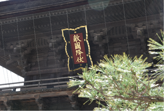 当時の色調を再現した敵国降伏てきこくこうふく扁額へんがく