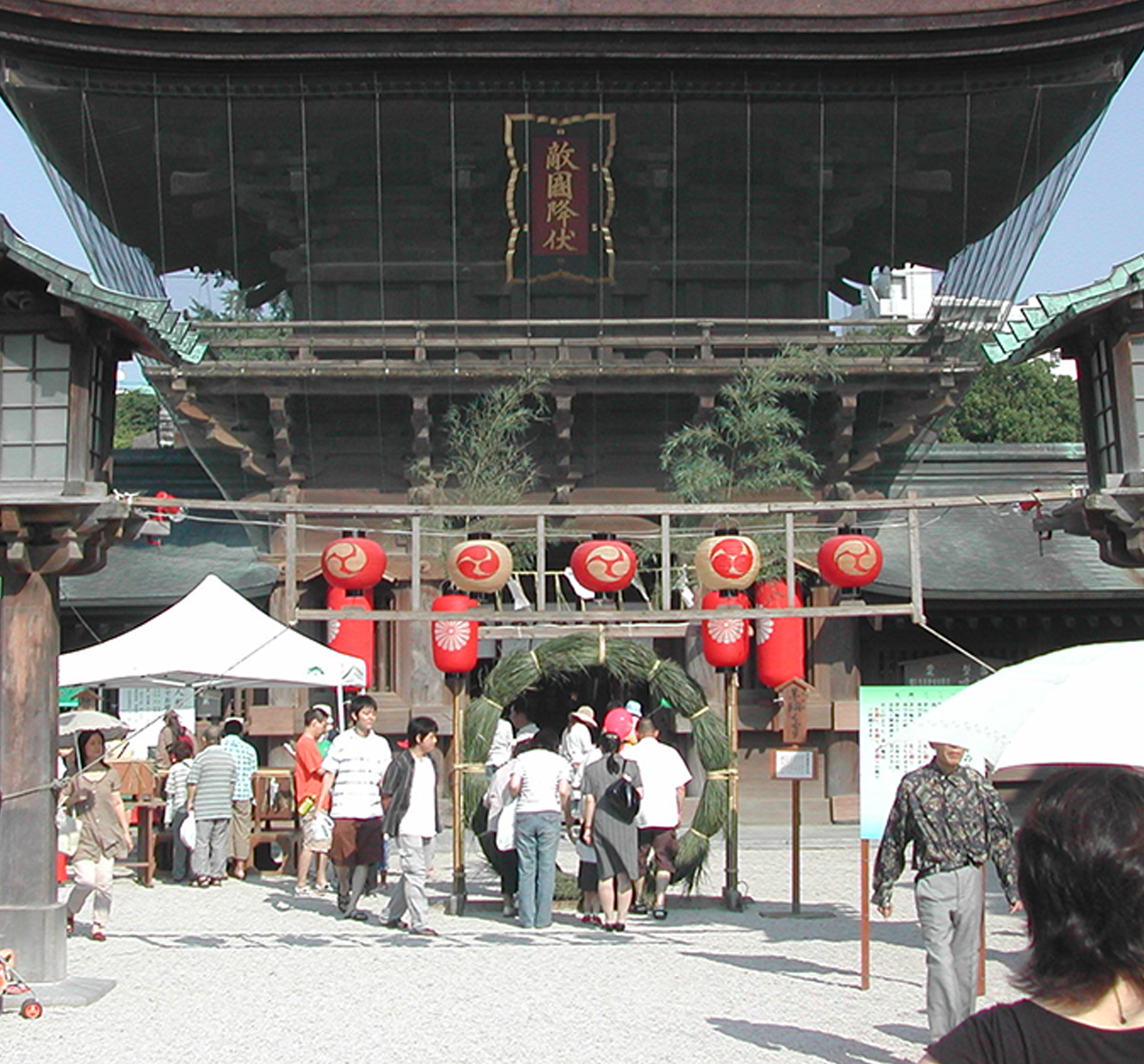 Founded in 923 AD, Hakozaki Shrine is one of Japan's three major Hachiman shrines. It is famous as a place to pray for victory andsuccess. Throughout history, many notable samurai and leaders,including Ashikaga Takauji, Ōuchi Yoshitaka, Kobayakawa Takakage,and Toyotomi Hideyoshi, visited the shrine to pay their respects.