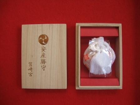 楼門そば右側の朱色の垣根の中に植えられている松は「筥松」と呼ばれ、その昔、神功皇后が応神天皇をお産みになられた時の御胞衣(へその緒と胎盤)を埋めた場所に、標(しるし)として植えられた松と伝えられています。このことより、筥崎宮は母と子の守り神として、また安産成就の神として昔から信仰されています。